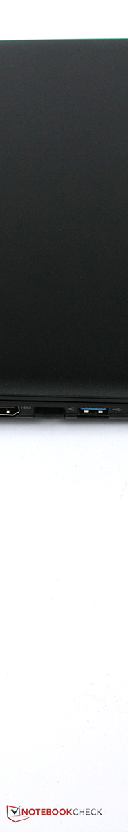 Die Anschlüsse wurden zwar komplett durcheinandergewirbelt, allerdings hat sich an Anzahl und Art der Ports im Vergleich zum IdeaPad Flex 14 nicht viel geändert: Immer noch gibt es nur einen USB-3.0-Anschluss, zwei USB-2.0-Anschlüsse sitzen an der rechten Seite. Neu hinzugekommen ist lediglich die Möglichkeit, nun ein Notebook-Schloss zu nutzen. Weggefallen ist dafür die Lautstärkewippe an der rechten Seite, sie wurde ersatzlos gestrichen. Toll ist aber weiterhin, dass ein Ethernet-Anschluss vorhanden ist, der sogar Gigabit-Netzwerke unterstützt.