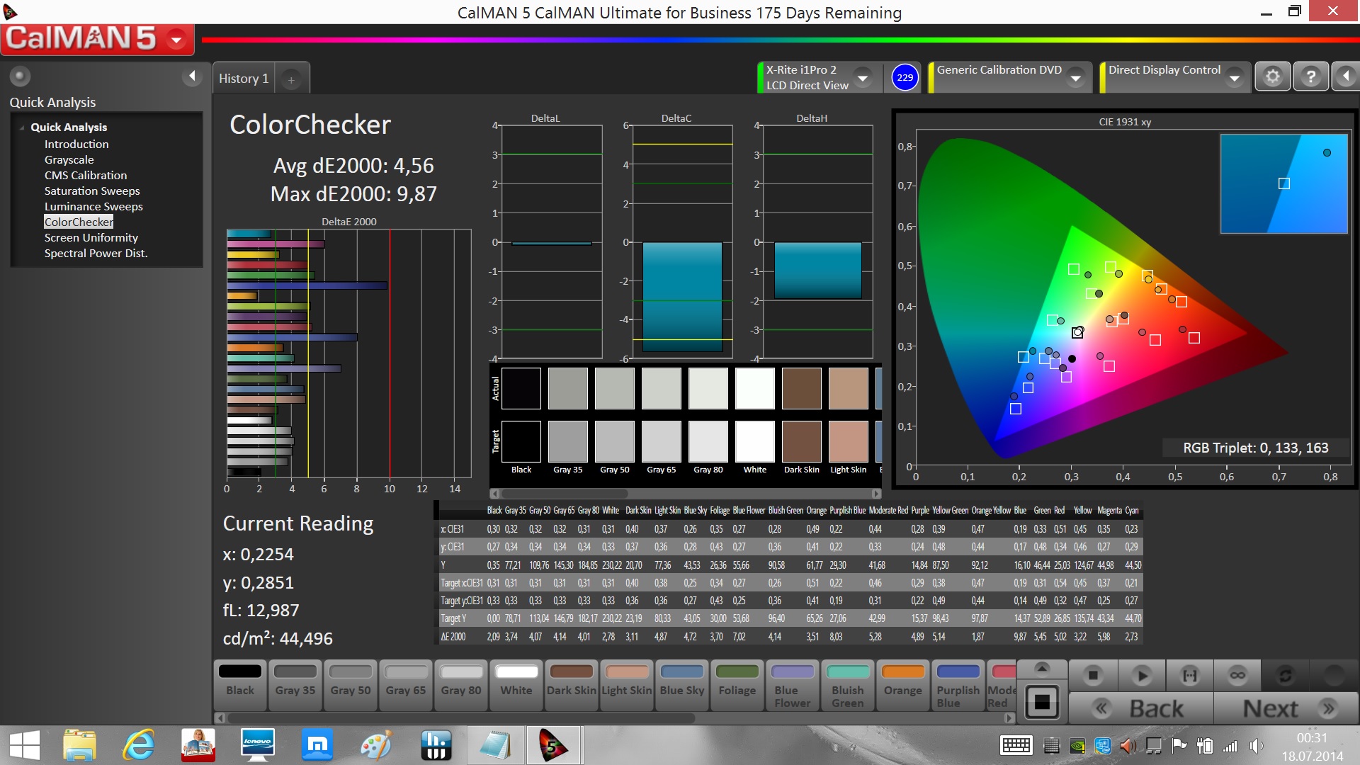 ΔE ColorChecker Calman: 4.56 | ∀{0.5-29.43 Ø4.78}
