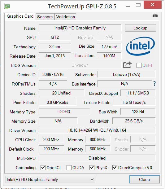 Neben der GeForce GPU steckt auch Intels HD Graphics 4400 Grafikkern in dem Lenovo Rechner. Zusammen bilden sie eine Umschaltgrafiklösung (Optimus). Intels GPU kommt im Alltags- und im Akkubetrieb zum Einsatz. Der GeForce Kern hat seinen Auftritt bei Anwendungen, die nach viel Grafikleistung verlangen - beispielsweise Computerspiele. Die Umschaltung zwischen beiden Kernen verläuft automatisch. Der Nutzer hat aber immer die Möglichkeit einzugreifen.