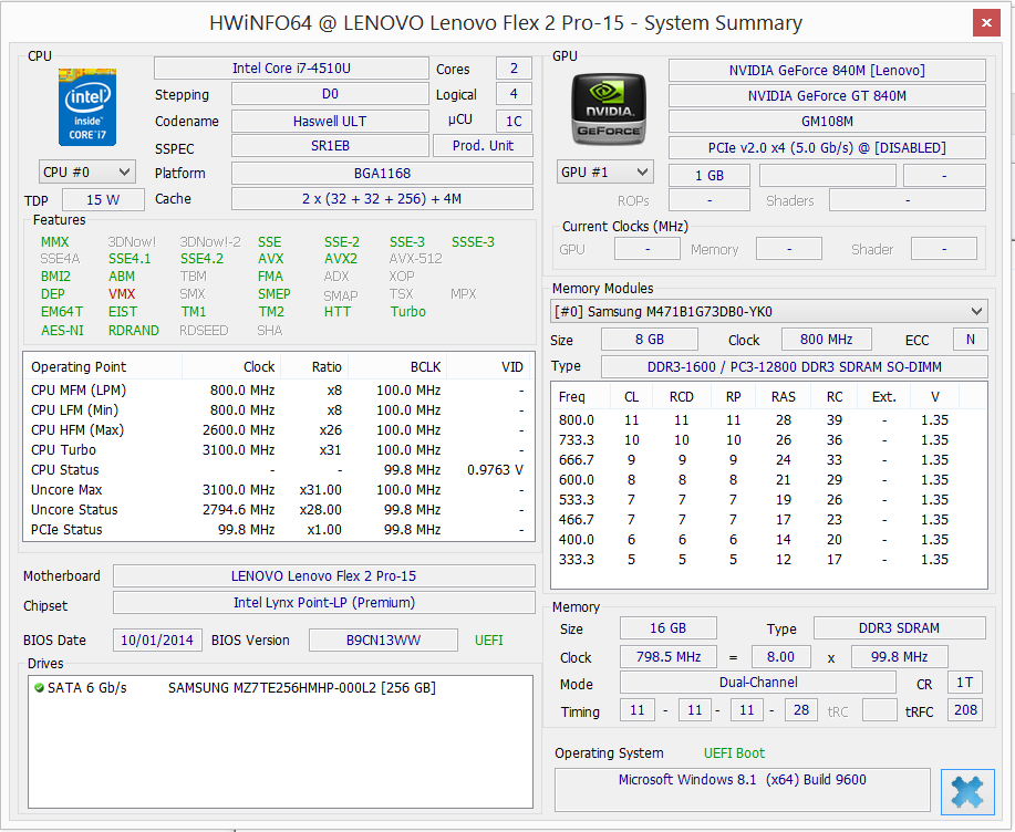 | Lenovo Flex 2 Pro-15 4510U, GeForce 840M | HP Envy 15-w000ng x360 5200U, GeForce 930M | Asus Transformer Book Flip TP500LN 4210U, GeForce 840M | HP Pavilion 15-ab022ng 5500U, GeForce 940M | Acer Aspire V3-574G-59MA 5200U, GeForce 940M | Dell Inspiron 15-7548 5500U, Radeon R7 M270 | Acer Aspire V15 Nitro VN7-571G-574H 5200U, GeForce GTX 850M | |