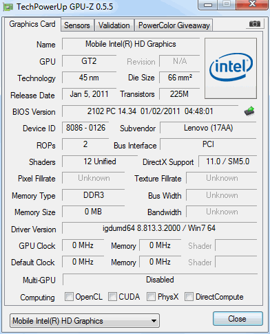 Im DIE der Doppelkern-CPU hat Intel auch eine DirectX 10-fähige Grafik - Intel HD Graphics 3000 - und den Speicher-Controller (DDR3-1066/1333 Memory Controller, maximal 8 GByte) integriert.