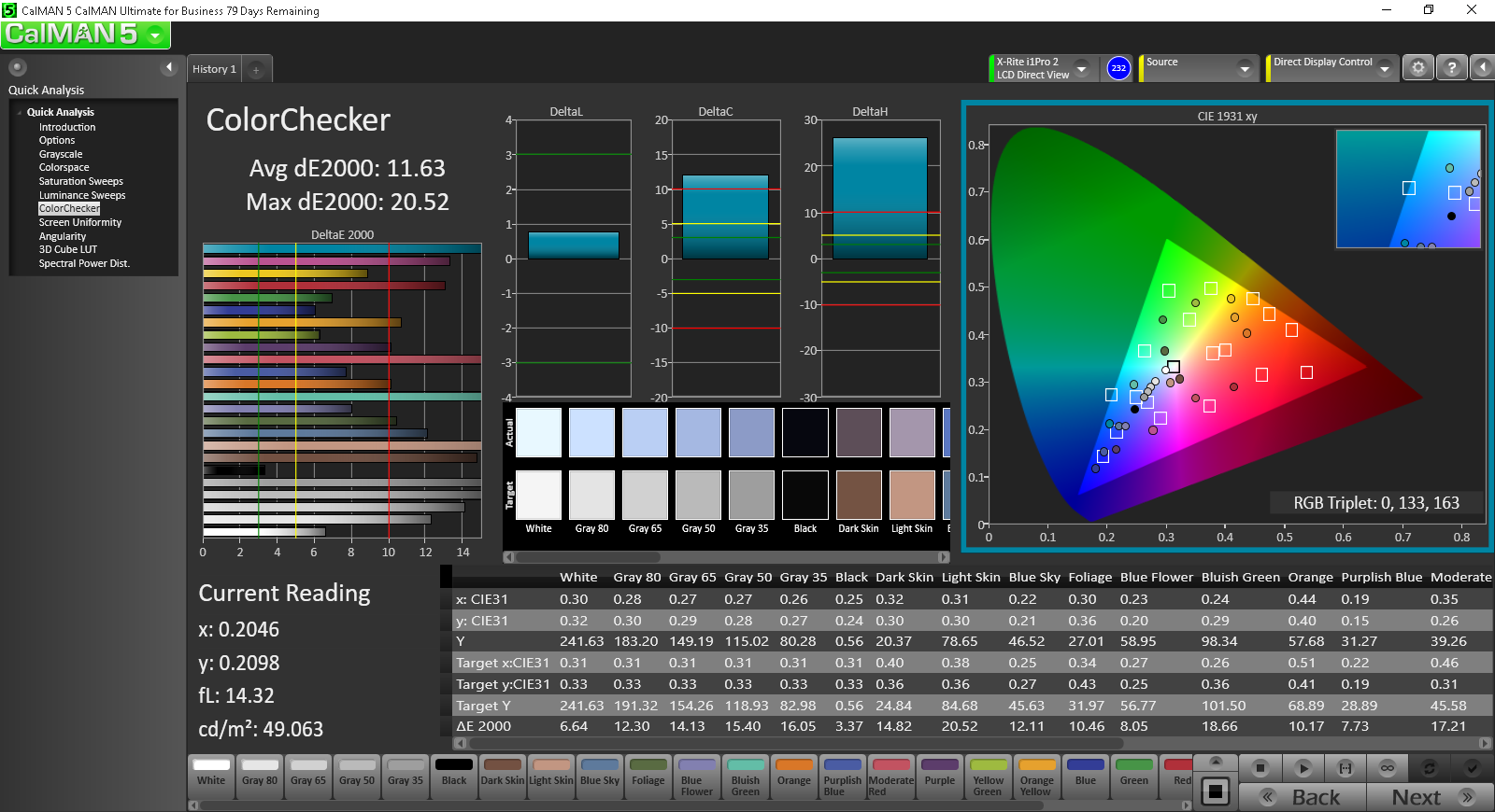 ΔE ColorChecker Calman: 11.63 | ∀{0.5-29.43 Ø4.79}