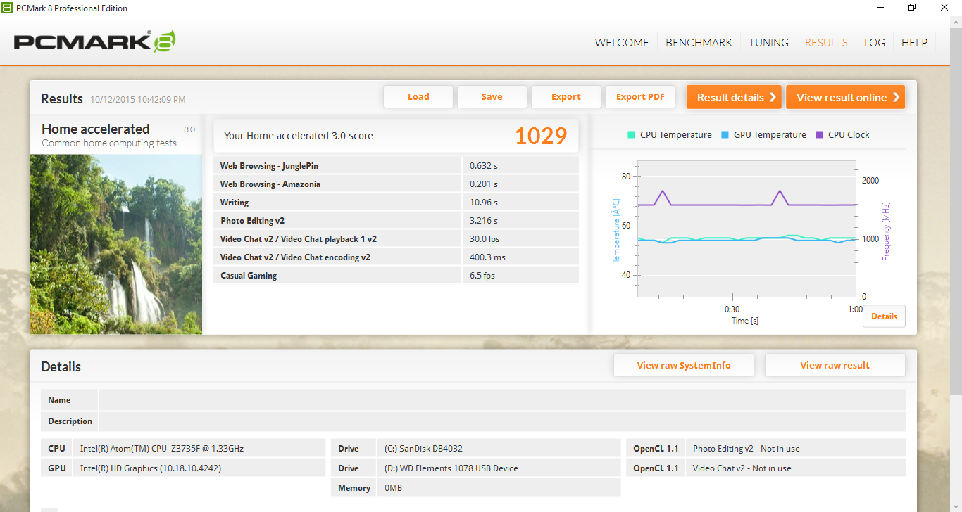 | PCMark 8 Home Score Accelerated v2 | 1029 Punkte | |