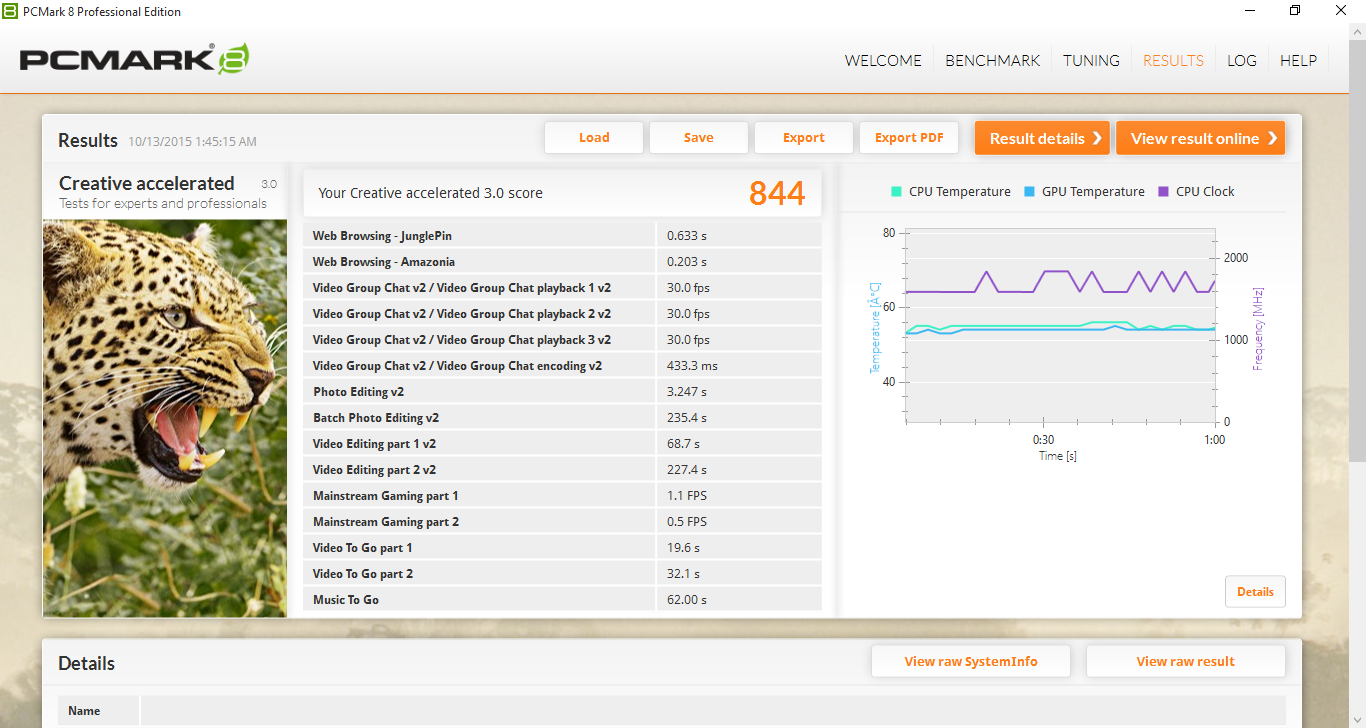 | PCMark 8 Creative Score Accelerated v2 | 844 Punkte | |