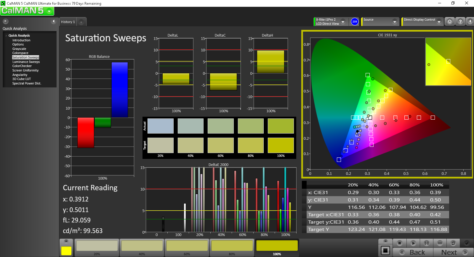 Die Ergebnisse des 100S können mit einer Kalibrierung massiv verbessert werden. Die Abweichungen der Farben wird mit zunehmender Sättigung aufgrund der eingeschränkten sRGB-Abdeckung dennoch höher, aber zumindest die Farbtemperatur verbessert sich deutlich. Jedem Käufer empfehlen wir daher eine Kalibrierung, falls das aber nicht möglich ist, sollte unser verlinktes Profil weiter oben helfen.