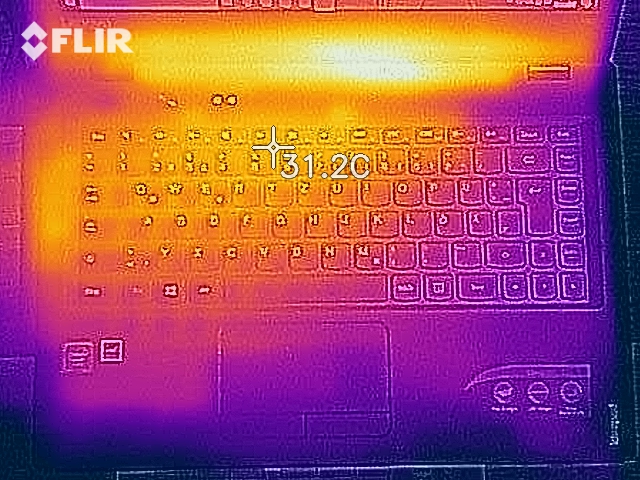 (+) Die Handballen und der Touchpad-Bereich sind mit gemessenen 26.7 °C kühler als die typische Hauttemperatur und fühlen sich dadurch kühl an.