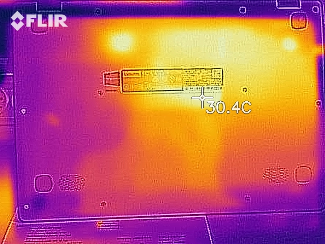 Sonderlich stark erwärmt sich das Notebook nicht. Während des Stresstests liegen die Temperaturen an allen Messpunkten klar unterhalb von 40 Grad Celsius.