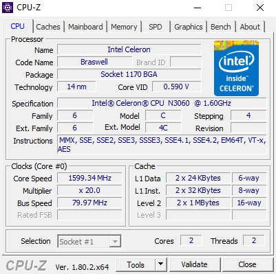 | GPU | Intel HD Graphics 400 (Braswell) | Intel HD Graphics (Braswell) | Intel HD Graphics 500 | Intel HD Graphics (Bay Trail) |