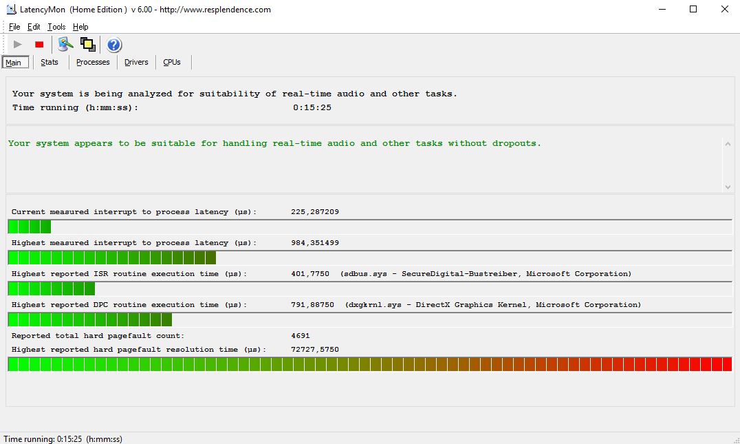 In unserem Lenovo IdeaPad 110S steckt ein Intel Celeron N3060 Prozessor, welchem lediglich 2 GB DDR3-RAM zur Seite stehen. Die Intel HD-Graphics 400 als integrierte Grafikeinheit sorgt für die Bildausgabe. Als Massenspeicher müssen wir uns in unserem Gerät mit einem Flash-Speicher mit 32 GB Kapazität zufriedengeben. Alternativ gibt es das Lenovo IdeaPad 110S auch mit 64 GB eMMC oder aber auch mit einer 256-GB-SSD (M.2). Ebenso finden sich bei den technischen Daten auch Informationen von Geräten mit bis zu 4 GB DDR3-RAM. Ebenfalls kann es einzelne Geräte geben, welche mit einem etwas schnelleren Intel Pentium N3710 ausgestattet sind. Im gleichen Atemzug weist der Hersteller aber auf regionale Unterschieden bei den technischen Daten hin. Im deutschen Markt finden wir somit zum Testzeitpunkt nur das preisgünstigste Gerät, wie wir es zu Testzwecken bekommen haben. Für die Einsatzzwecke als Office-Gerät mit Multimedia-Eigenschaften eignet sich das Lenovo IdeaPad 110S durchaus. Die Analyse mit dem Tool "LatencyMon" meisterte das kleine Subnotebook recht gut, sodass keine Ruckler und Tonaussetzer bei der Wiedergabe von Echtzeit-Audio-Anwendungen auftreten sollten.