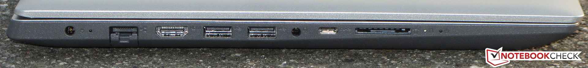 Überraschungen auf Seiten der Schnittstellen gibt es nicht: Der Rechner bringt zwei Typ-A-USB-Steckplätze (USB 3.1 Gen 1) und einen Typ-C-Steckplatz (USB 3.1 Gen 1) mit. Dazu gesellen sich ein HDMI-Ausgang und ein Gigabit-Ethernet-Anschluss. Der Speicherkartenleser hat es nicht eilig. Beim Kopieren großer Datenblöcke wird eine maximale Transferrate von 28,8 MB/s erreicht. Die Übertragung von 250 JPG-Bilddateien (je rund 5 MB) wird mit einer Geschwindigkeit von 26 MB/s absolviert. Wir testen Speicherkartenleser mittels einer Referenzkarte (Toshiba Exceria Pro SDXC 64 GB UHS-II).