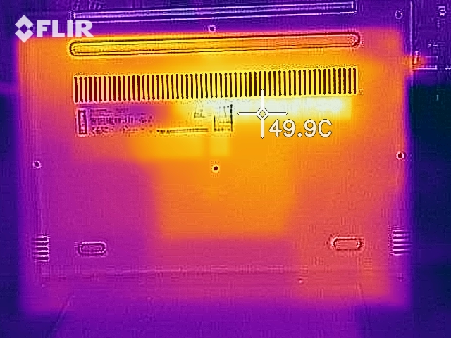 (±) Auf der Unterseite messen wir eine maximalen Wert von 40 °C (im Vergleich zum Durchschnitt von 36.8 °C).