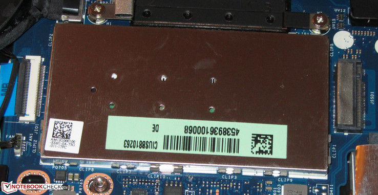 Im Inneren des Notebooks findet sich ein freier M.2-2280-Steckplatz, der mit einer entsprechenden SSD belegt werden könnte. Es stellt sich die Frage, warum Lenovo das Notebook nicht ab Werk mit einer M.2-SSD ausgestattet hat. Nutzer, die eine Dualbestückung mit SSD und HDD wünschen, müssten beide Laufwerke zusätzlich erwerben. Hier hätte Lenovo im Sinne des Kunden mitdenken müssen.