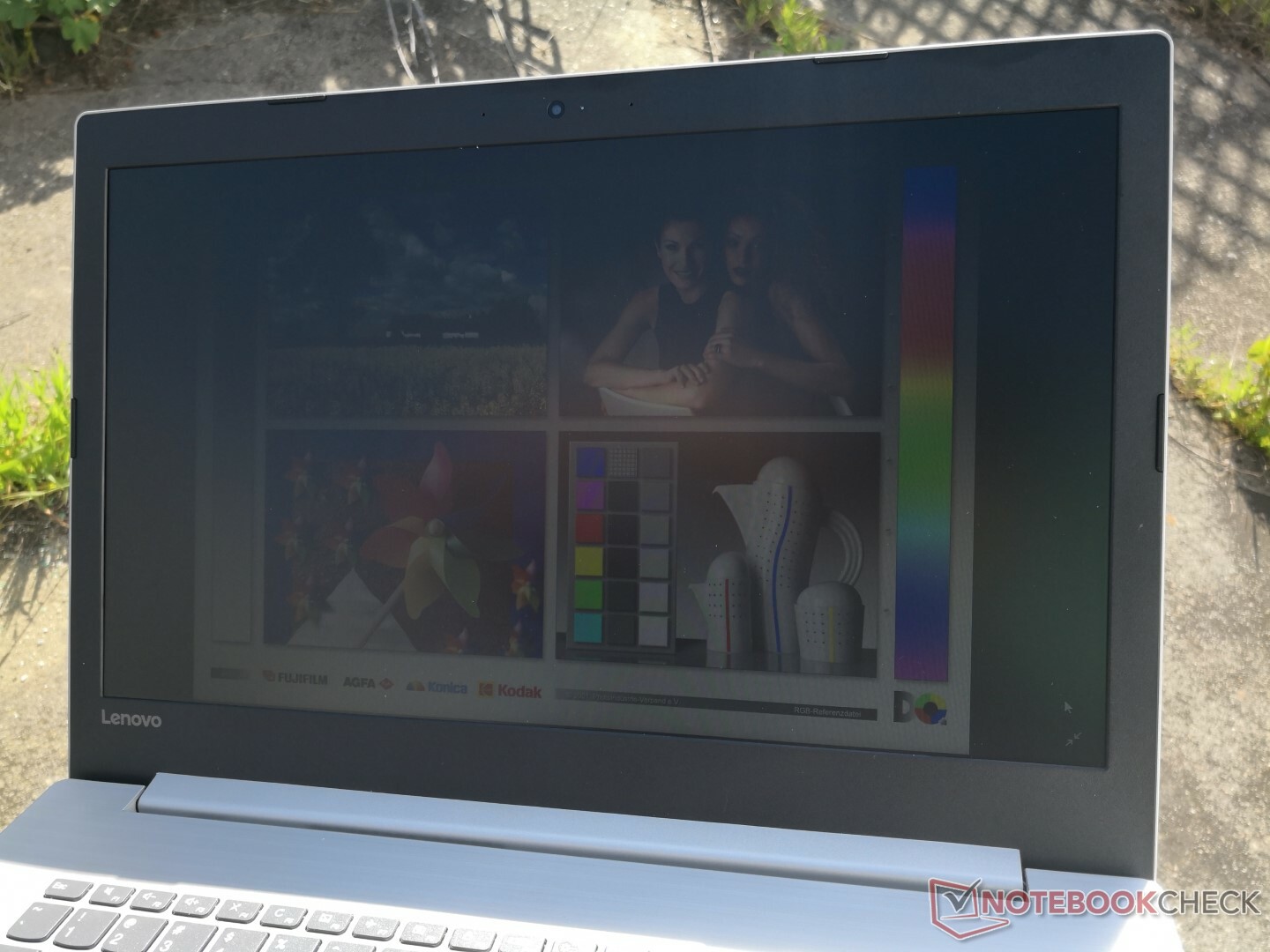 Lenovos IdeaPads sind traditionell mit billigen Displays ausgestattet und auch das IdeaPad 330 stellt hier keine Ausnahme dar. Die Pixeldichte des matten HD+-Panels war so gering, dass bei Buchstaben Treppeneffekte sichtbar waren. Das geringe Kontrastverhältnis für Farben und Grautöne erschwerte in Verbindung mit der niedrigen maximalen Helligkeit die Verwendbarkeit im Freien. Einzig die Reaktionszeiten für Schwarz-zu-Weiß und Grau-zu-Grau waren vergleichsweise niedrig, was zu weniger Ghosting führte als bei den IPS-Panels der Konkurrenz. Doch selbst das konnte das schlechte Display nicht retten.