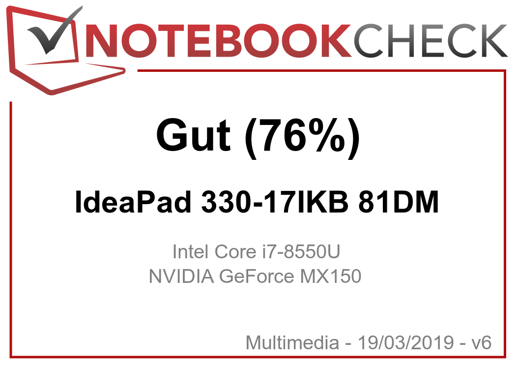 Test Lenovo IdeaPad 330-17IKB (i7-8550U, GeForce MX150) Laptop