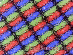 Aufgrund der niedrigen Auflösung und der matten Beschichtung wirkt der Inhalt körniger als uns lieb wäre. Die einzelnen Pixel sind nicht sonderlich scharf, wie unserer Aufnahme mit dem Mikroskop rechts entnommen werden kann.