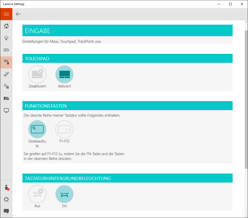 Die Chiclet-Tatatur des IdeaPad 500S basiert auf Lenovos Standard-Layout, das durch die Positionierung von Zusatztasten am rechten Keyboard-Rand sowie eine invertierte Belegung der Funktionstasten-Reihe gekennzeichnet ist. Letzteres kann in der Lenovo Settings App bei Bedarf geändert werden. Die zweistufige, weiße Tastenbeleuchtung erleichtert zudem die Nutzung des Notebooks bei ungünstigen Lichtverhältnissen.