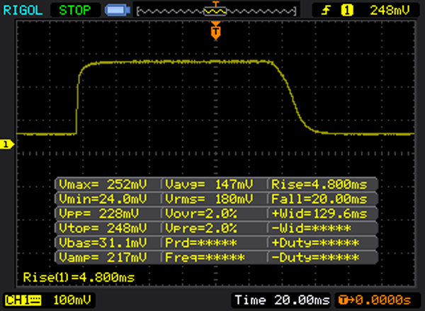 | 22 ms ... steigend ↗ und fallend ↘ kombiniert | ↗ 4 ms steigend | |