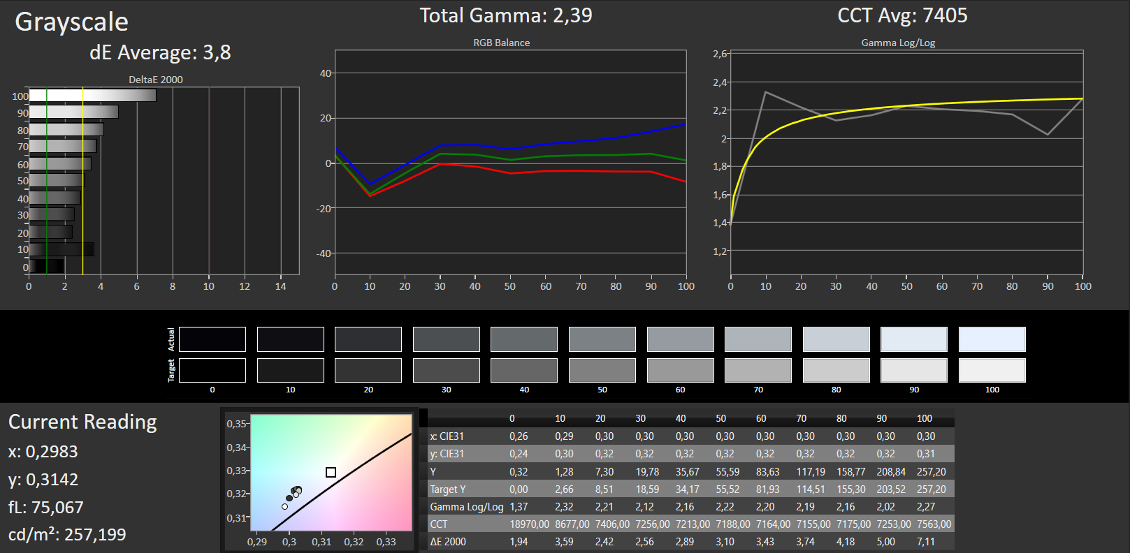 ΔE Greyscale Calman: 3.8 | ∀{0.09-98 Ø5}