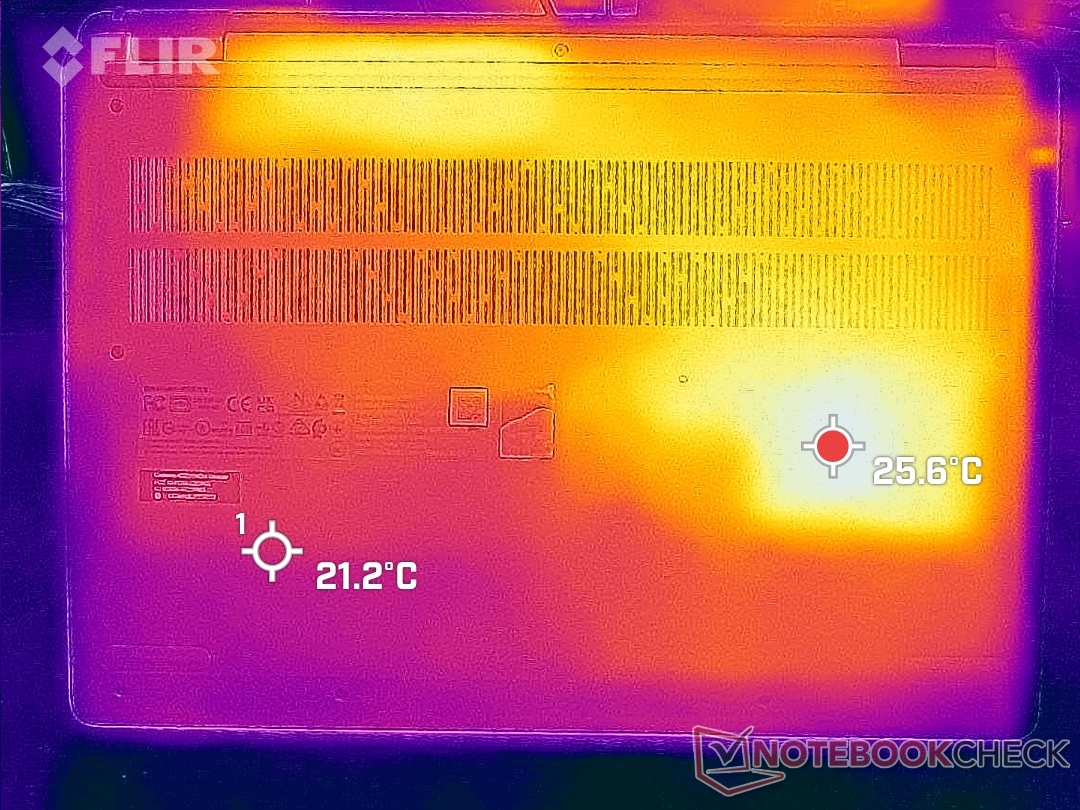 (+) Die Handballen und der Touchpad-Bereich erreichen maximal 32.2 °C und damit die typische Hauttemperatur und fühlen sich daher nicht heiß an.