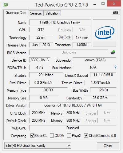 Wie schon erwähnt ist die Ausstattung unseres Testmodells eine der teuersten und schnellsten, die man im Lenovo IdeaPad G50-70 bekommt: Ein Intel Core i5-4200U Prozessor soll für genug Power bei geringem Verbrauch sorgen, die dedizierte Grafikkarte Radeon R5 M230 soll ein bisschen Extra-Power gegenüber der im Prozessor integrierten Intel HD Graphics 4400 liefern. Interessant wird sein, wie sich der große Arbeitsspeicher von 8.192 MByte auf die Systemperformance auswirkt.