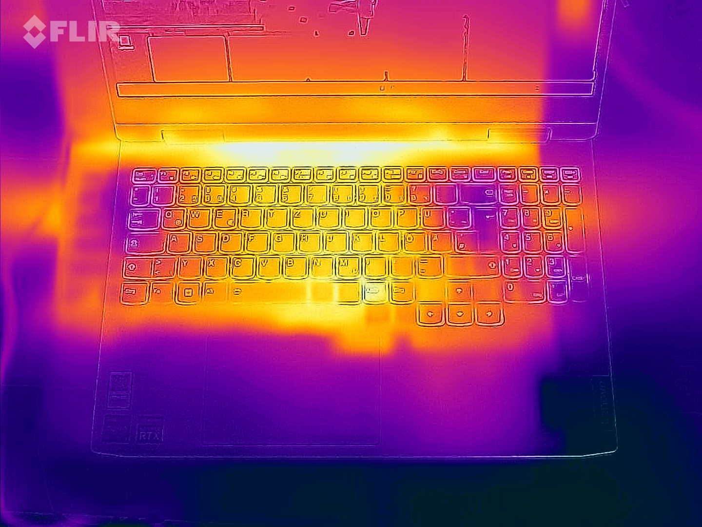 Die Temperaturentwicklung ist ebenfalls typisch für ein Gaming-Notebook. Während der Lenovo-Spross im Leerlauf angenehm kühl bleibt, werden im 3D-Betrieb auf der Oberseite bis zu 47 °C und auf der Unterseite bis zu 52 °C erreicht. Auf den Schoß sollte man den Laptop beim Zocken also nicht nehmen.