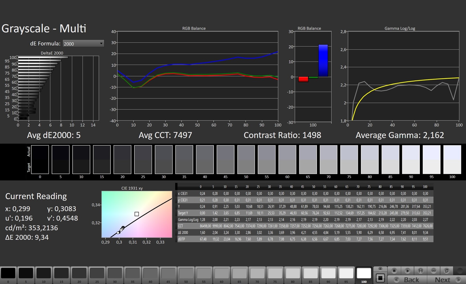 ΔE Greyscale Calman: 5 | ∀{0.09-98 Ø5}
