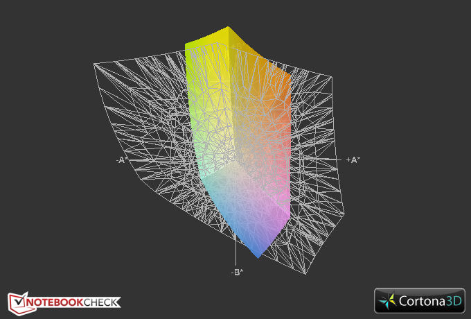 Der Schwarzwert des IdeaPad N581 liegt mit 1,37 cd/m² im hinteren Mittelfeld. Auch beim Kontrastwert von 163:1 sieht es nicht besser aus. In Sachen Schwarzwert und Kontrast können alle drei Notebooks nicht glänzen. Das Compaq Presario CQ58-148SG (1,24 cd/m², 152:1) und das Sony Vaio VPC-EH3C0E/W (1.54 cd/m², 144:1) liefern größtenteils noch schlechtere Werte. Den sRGB- und den AdobeRGB-Farbraum kann das Display nicht abbilden. Dies stellt kein Problem dar. Diese Farbräume werden im professionellen Bild- und Grafikbereich benötigt.