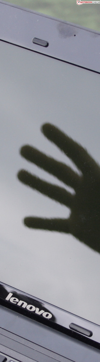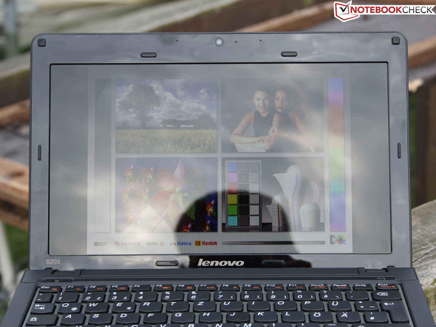 Einher mit der geringen Energieaufnahme geht ein im normalen Betrieb leiser Lüfter (31.5-35 dB(A)). Unter hoher Last kann sich das schmale Gehäuse bis auf 41 Grad erhitzen, was noch akzeptabel ist. Das kontrastschwache Display-Panel mit der geringen Helligkeit ist das traurigste Kapitel des S205. Reflexionen und ein dunkler Desktop machen den fleißigen Outdoor-Einsatz zunichte.