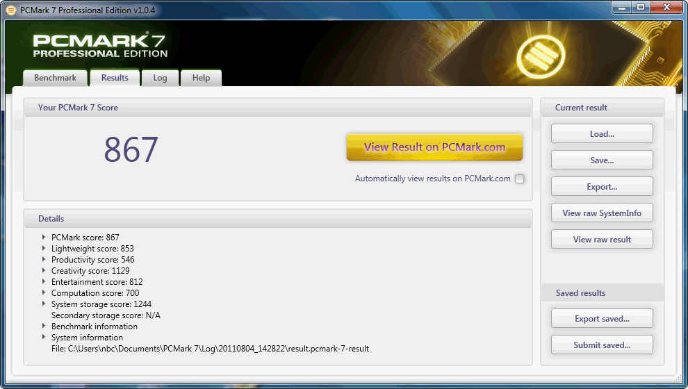 Die synthetischen CPU-Benchmarks lassen den AMD E-350 nur gegenüber Intel Atom Dual Core gut aussehen. Was bemerkt der Windows-Anwender davon? Wir benutzen den PC Mark Vantage sowie den PC Mark 7, welche alle Komponenten, inklusive DDR3-RAM, Festplatte und Grafikkarte, prüft. 2.259 bzw. 867 Punkte sind das knappe aber für die Fusion-APU typische Resultat.
