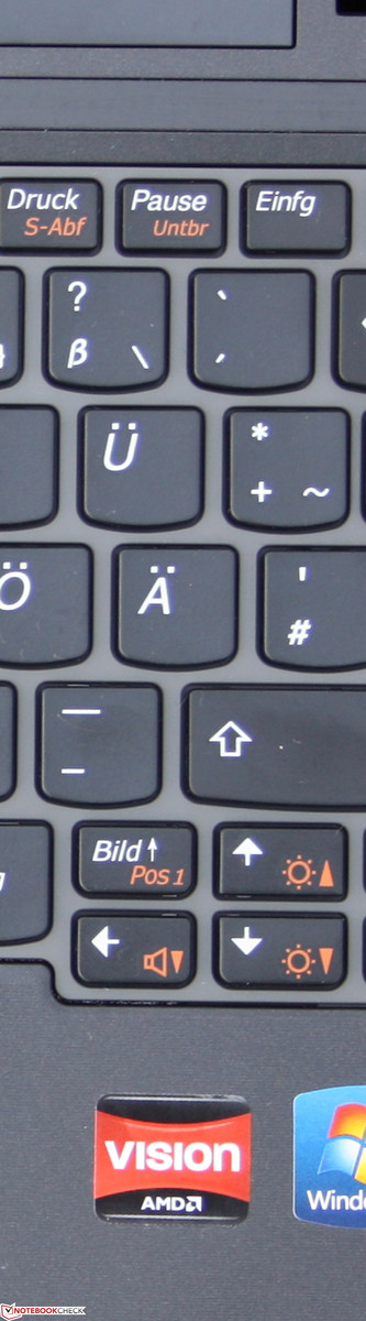Das Mousepad begeistert vor allem durch seine leisen und mit einem deutlichen Tastenhub versehenen Tasten. Ein exakter Druckpunkt ist nicht vorhanden, allerdings vermissen wir einen solchen beim schnellen Klicken auch nicht. Das Multi-Touch Pad (Synaptics V7.2) erkennt den Einsatz von zwei Fingern (Zwei-Finger-Gesten). Damit können wir zum Beispiel mit zwei Fingern zoomen. Ein vertikaler Bildlauf ist vorhanden und optisch markiert. Der Horizontale müsste erst in der Synaptics-Steuerung aktiviert werden.