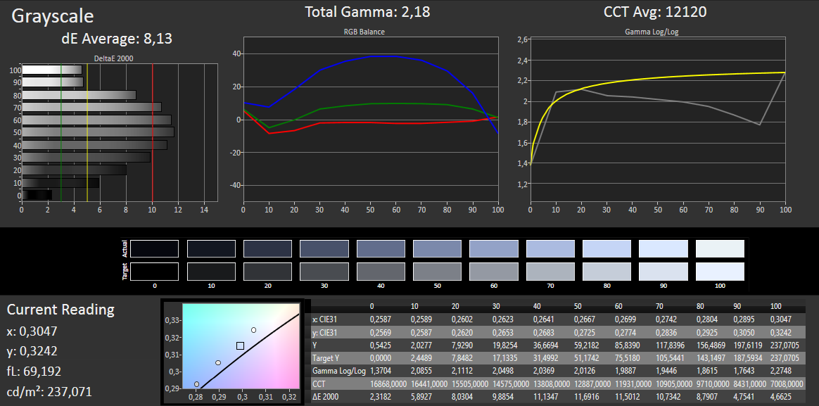 ΔE Greyscale Calman: 8.13 | ∀{0.09-98 Ø5}