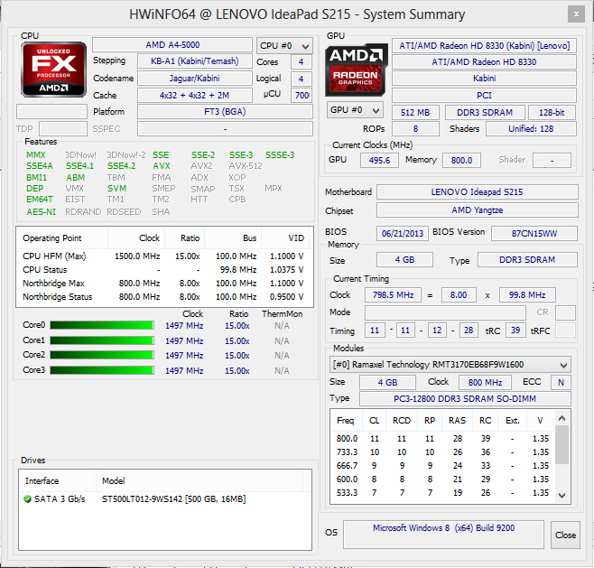 | Lenovo IdeaPad S215 59372287 Radeon HD 8330, A4-5000, Seagate Momentus Thin ST500LT0 12-9WS142 | Toshiba Satellite NB10t-A-101 HD Graphics (Bay Trail), N2810, Toshiba MQ01ABF050 | Acer Aspire V5-131-10172G50akk HD Graphics (Ivy Bridge), 1017U, Seagate Momentus Thin ST500LT0 12-9WS142 | Lenovo IdeaPad S210 Touch 20257 HD Graphics (Ivy Bridge), 2127U, Seagate Momentus Thin ST500LT0 12-9WS142 | Lenovo ThinkPad Edge E145 Radeon HD 8240, E1-2500, Hitachi Travelstar Z5K500 HTS545050A7E380 | |