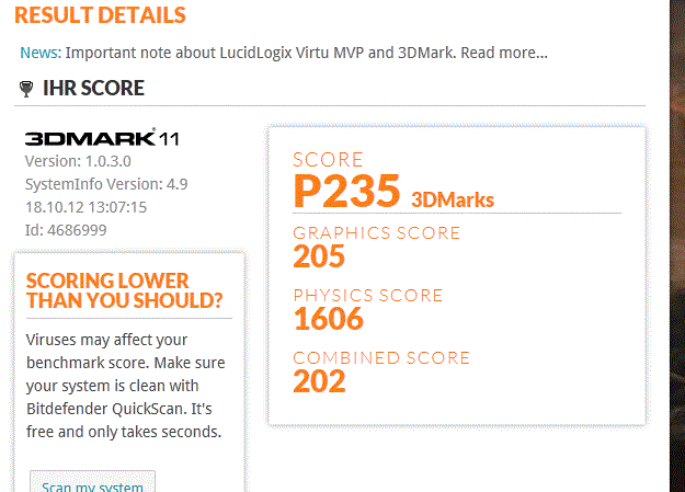 | 3DMark Vantage P Result | 2034 Punkte | |