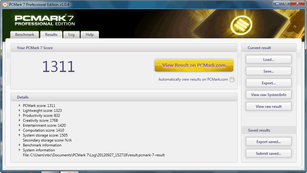 | PCMark Vantage - 1024x768 Result (nach Ergebnis sortieren) | |