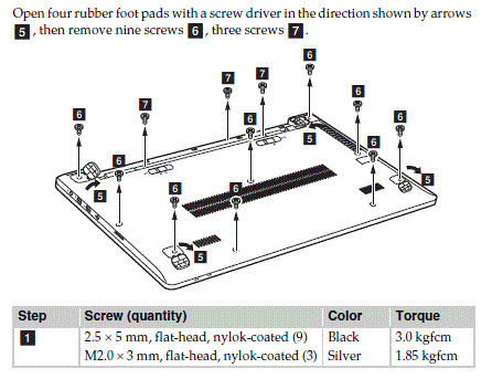 Wartungsklappen gibt es an der Unterseite keine. Wie beim S400 können aber alle Schrauben gelöst werden (inklusive unter den Standfüßen!), was die Bodenplatte vom Gehäuse trennt. Das Hardware-Manual gibt detailliert Auskunft zum Wechsel von Festplatte (unter Tastatur), RAM (1 Sockel) und PCI Express Mini Card (WLAN/Bluetooth). Auch das Kühlsystem und die Tastatur können mit Hilfe dieser Anleitung ausgebaut werden. Ersteres kann der Nutzer dadurch exzellent reinigen.