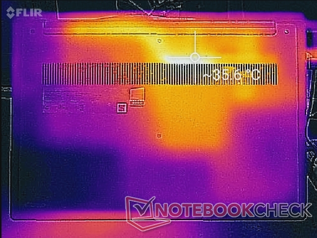(±) Auf der Unterseite messen wir eine maximalen Wert von 44 °C (im Vergleich zum Durchschnitt von 39.1 °C).