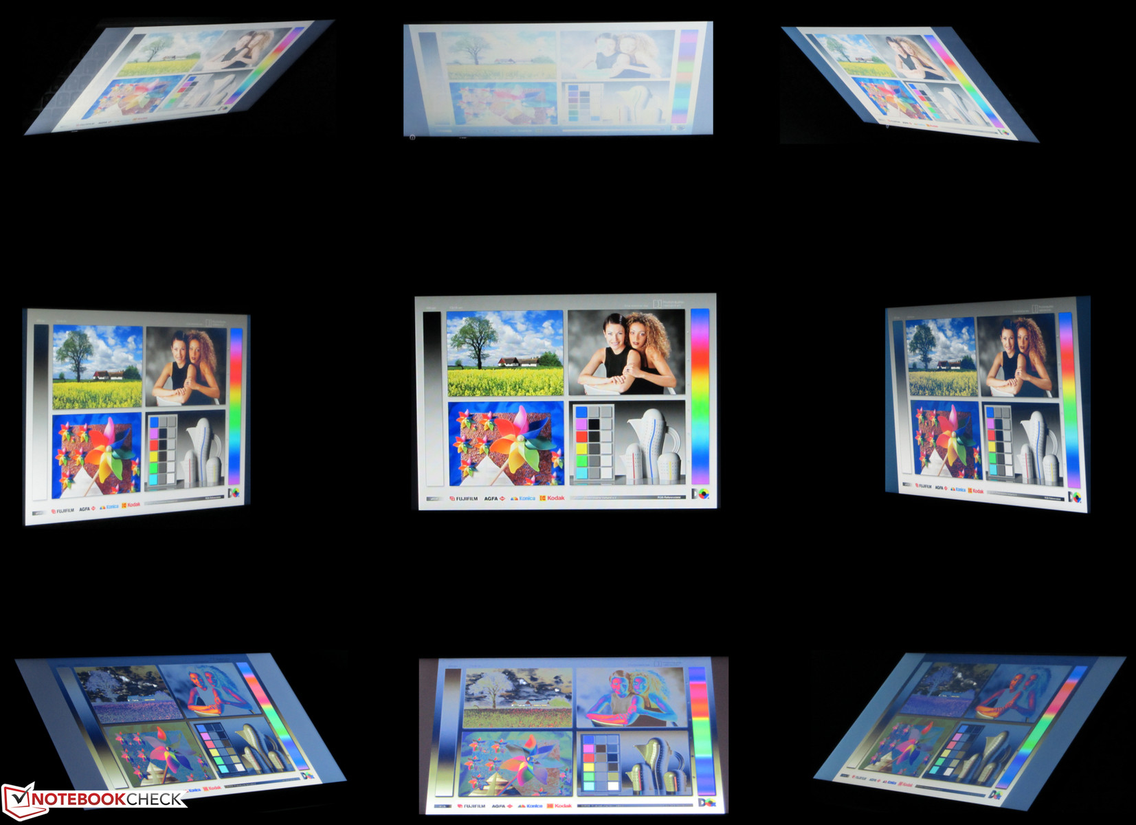 Ein altbekanntes Bild zeigt der Bildschirm hinsichtlich der Blickwinkelstabilität: Eine Änderung des vertikalen Betrachtungswinkels führt schnell zum Bildeinbruch. In horizontaler Richtung sieht es besser aus. Der Bildinhalt kann auch noch von der Seite abgelesen werden, allerdings dunkelt das Bild mit zunehmendem Winkel ab.