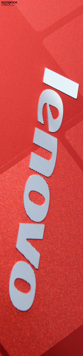 Der rote Aluminium-Deckel ist nicht nur ein Blickfang, er ist auch sehr stabil (Verwindungsversuche) und hinterlässt keine Schmierflächen. Leichter Druck auf die Deckel-Fläche zwingt diese kaum zum Eindellen. Hübsche Notebooks ohne Hochglanz, Lenovo zeigt, dass es möglich ist. Ganz ohne Hochglanz kann aber auch das U160 nicht auskommen. Die Arbeitsumgebung wird per Displayrahmen und Glare Type Panel mit einer spiegelnden Front versehen.