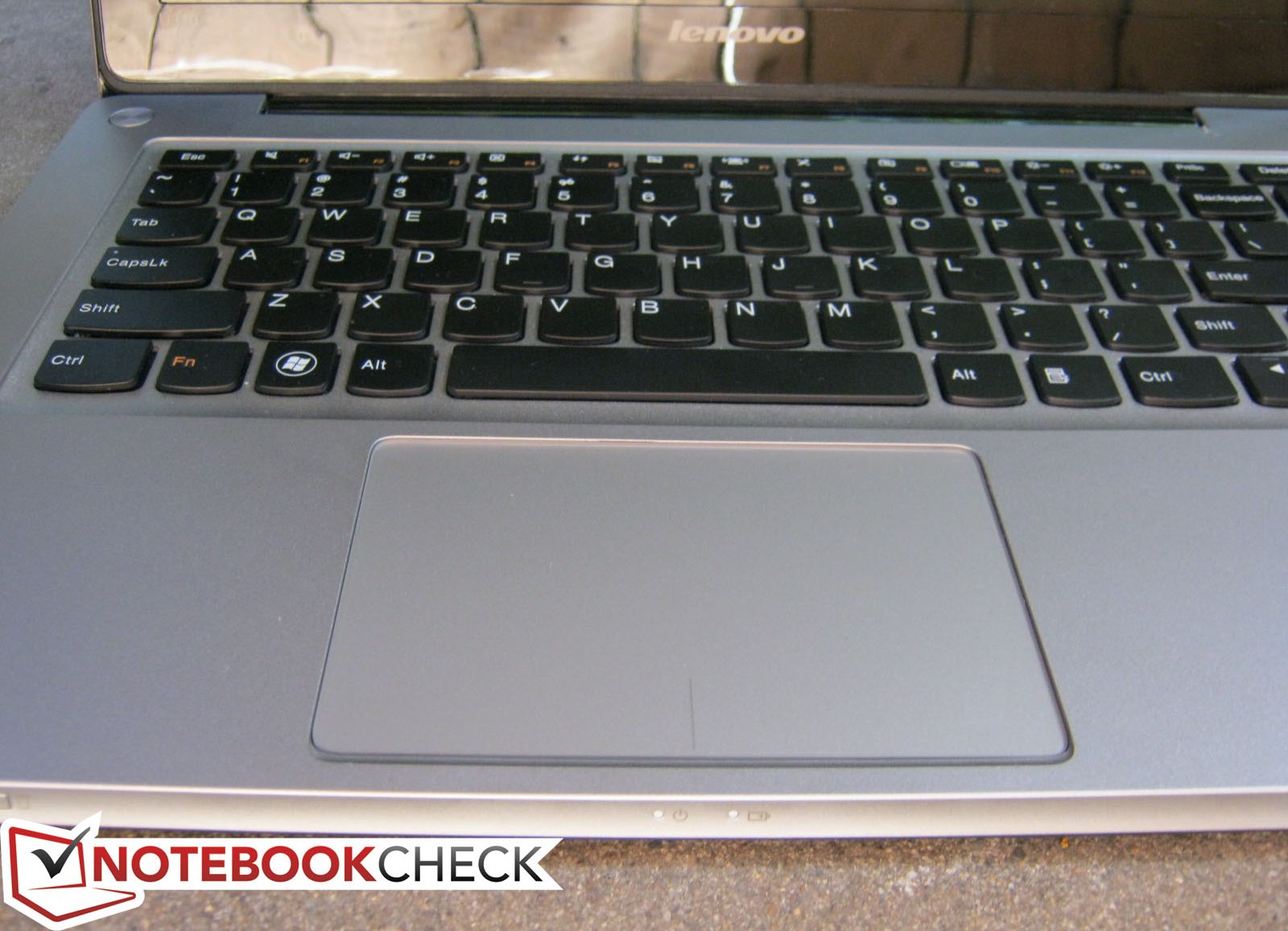 Die Chiclet-Tastatur (28cm x 10cm) ohne Tastaturbeleuchtung ist die gleiche wie in den US-Modellen der IdeaPad U400, U300 und U300s. Alle Tasten der AccuType Tastatur haben gleichmäßigen Abstand zueinander und sind generell gleich groß. Dies gilt anders als bei dem Dell XPS 13, dem Portégé Z835, dem Acer Aspire S3, dem Asus Zenbook oder dem ultra-schlanken Samsung Serie 9 auch für die Pfeiltasten. Daher kann sowohl komfortabel getippt als auch gescrollt werden. Die Tasten sind flach und nicht konkav. Feedback und Hubweg sind zufriedenstellend und etwas tiefer als bei vielen Ultrabooks.