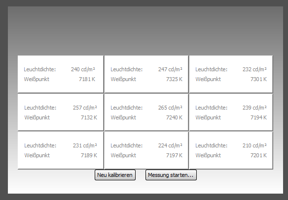 Wir haben ein U330 Touch Ersatzgerät vermessen, das uns vom Hersteller zur Prüfung der niedrigen Helligkeit gegeben wurde. Die Werte sind in der Tat besser (265 cd/m² Mitte), allerdings ist in dieser Touch-Version auch ein anderes Panel verbaut (InfoVision M133NWN1 R3). Im U330p (Non-Touch) steckt ein CLAA133WB03. Nebenstehende Screens zeigen die Messwerte des U330 Touch mit InfoVision-Panel.