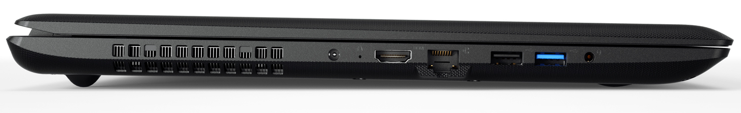 Obwohl es sich beim Ideapad um ein 17,3-Zoll-Notebook handelt, und somit genügend Platz vorhanden wäre, liefert Lenovo auf Seiten der Schnittstellen nur eine Minimalausstattung: Lediglich zwei USB-Anschlüsse (Typ A; 1x USB 2.0, 1x USB 3.0) sind vorhanden. Zudem gibt es nur eine Fast-Ethernet-Schnittstelle. Gigabit-Ethernet ist der Standard - auch im Niedrigpreissegment.