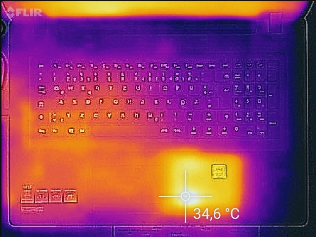 (+) Die Handballen und der Touchpad-Bereich erreichen maximal 33.5 °C und damit die typische Hauttemperatur und fühlen sich daher nicht heiß an.