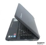 Die Fläche rund um die Tastatur gibt zum größten Teil nur geringfügig nach. Lediglich über dem DVD-Laufwerk lässt sich das Gehäuse stark eindrücken. Die Tasten der Tastatur lassen sich ebenfalls nur im Bereich des optischen Laufwerks stärker eindrücken. Anders sieht es bei der Bodenplatte des Notebooks aus. Hier lässt der Kunststoff-Boden teilweise sehr stark nach, auch aufgrund der zahlreichen Lüftungsschlitze. Der Displaydeckel lässt sich nur zur Mitte hin stärker eindrücken. Des weiteren lässt sich der Deckel oder besser die Oberfläche seitlich biegen.