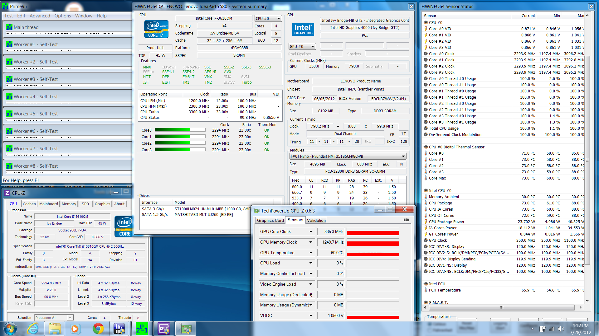 Unmittelbar nach dem Stresstest wiederholten wir 3DMark 06, der mit einem niedrigeren CPU Score von 4.569 Punkten endete. Dies war zu erwarten, da der Turbo-Boost beim Y580 beschränkt wird, sobald die Kerne Schwellentemperaturen erreichen.
