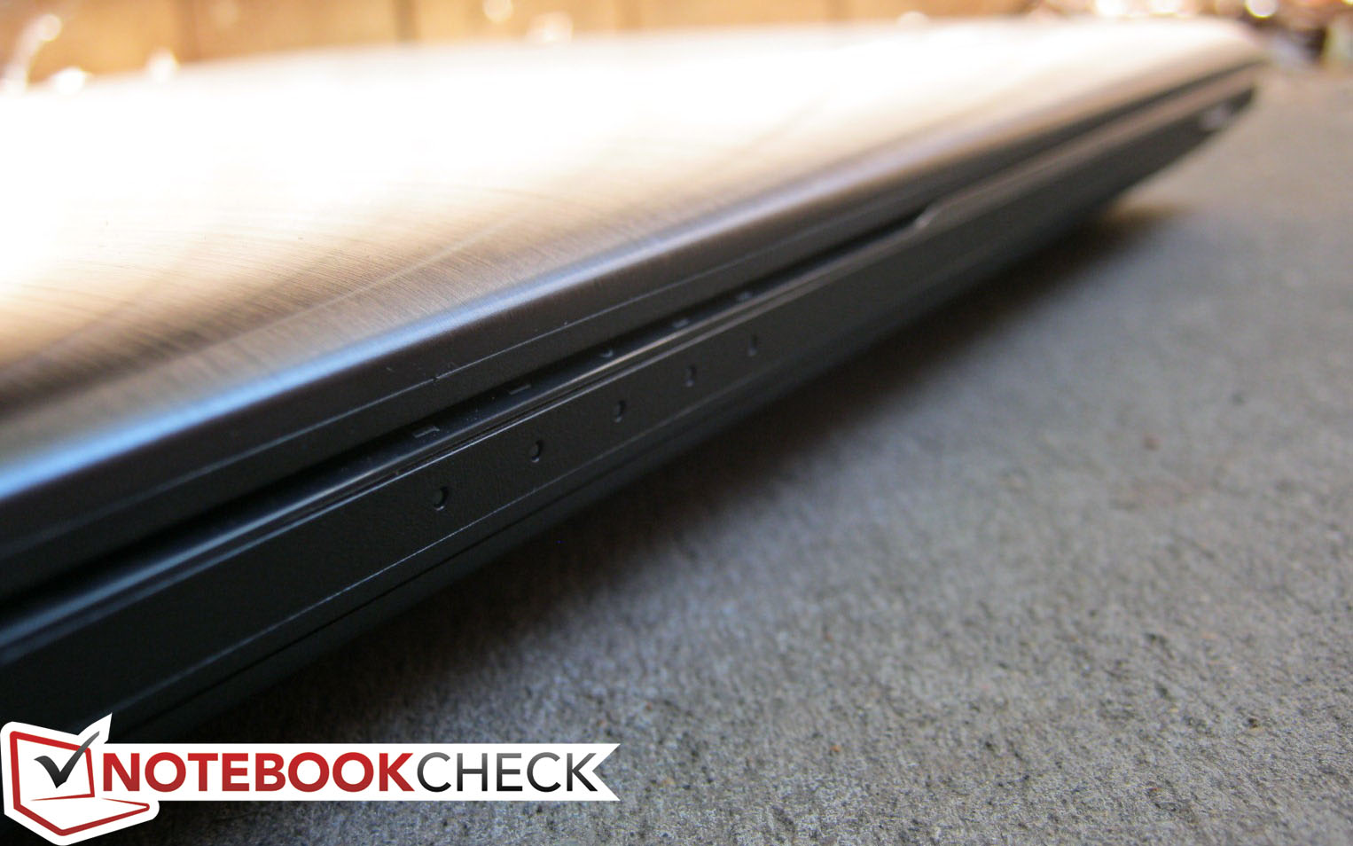 Obwohl das Aussehen generell verbessert wurde, ist die Gehäusequalität durchwachsen. Der Bildschirmdeckel ist sehr druckempfindlich und fühlt sich sehr dünn an. Legt man auch nur ein Smartphone auf das Notebook, so kann bereits ein leichtes Nachgeben beobachtet werden. Im Vergleich mit anderen bereits getesteten Notebooks, ist die Stabilität der Bildschirmdeckels unterdurchschnittlich. Daher würden wir eine Tasche oder einen Sleeve empfehlen, falls das Notebook mit anderen Gegenständen gemeinsam transportiert wird.