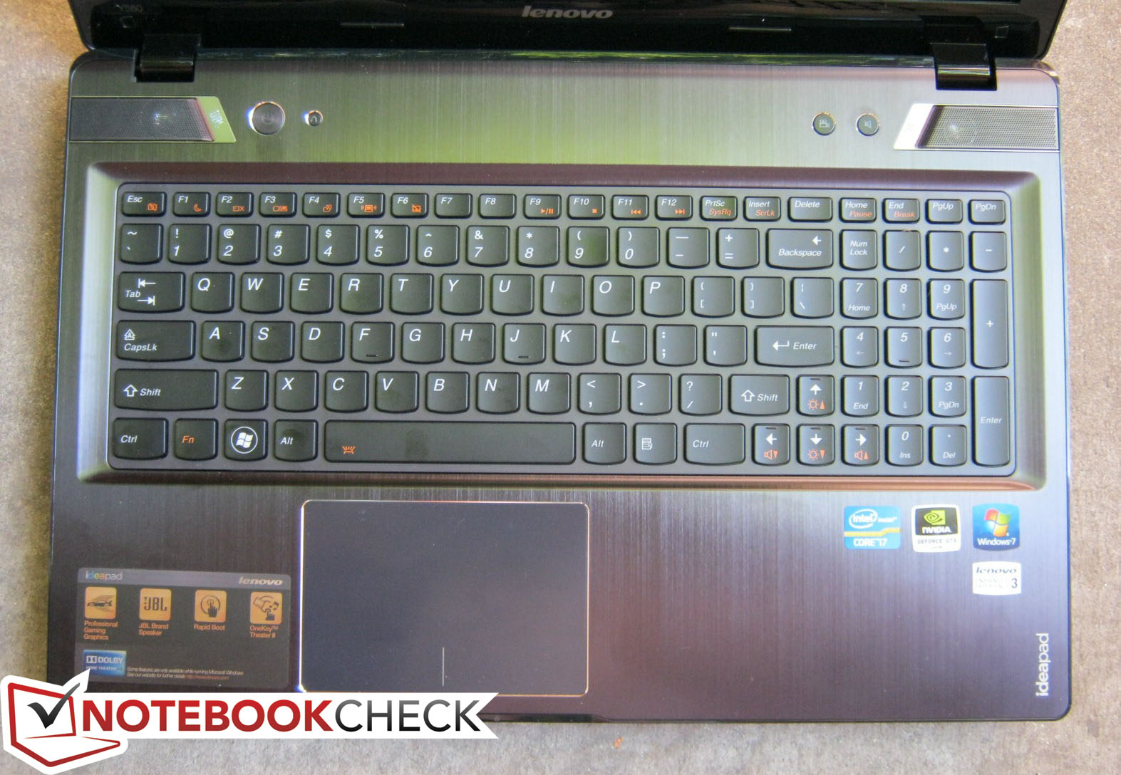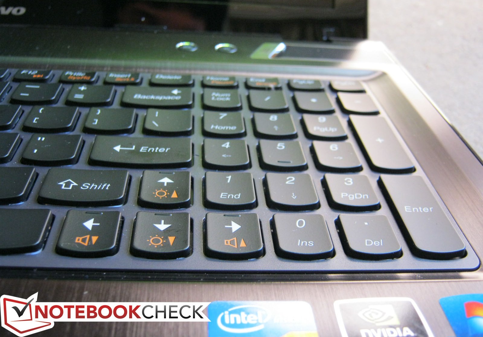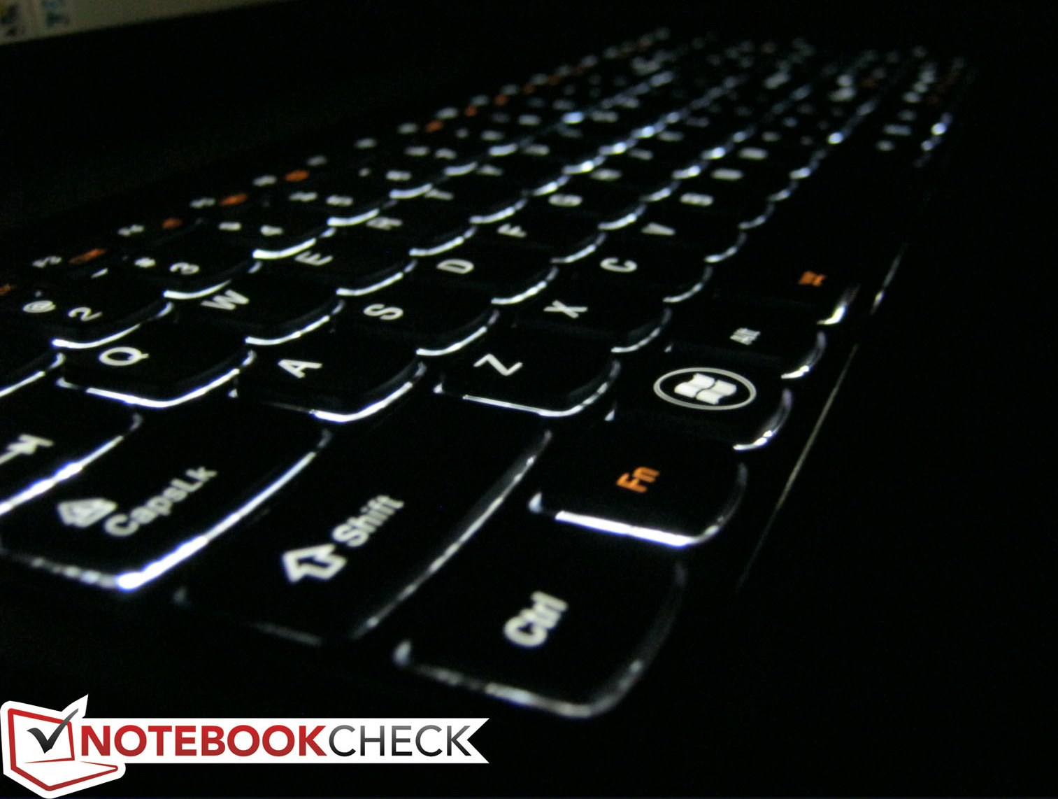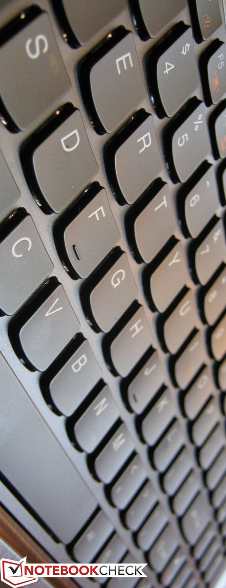 Layout, Abstände und Abmessungen (34 cm x 11 cm) der Tastatur wurden vom Y570 übernommen. Seit Lenovo von der klassischen, abgeschrägten Tastatur abgekommen ist, findet man die geschwungenen und leicht gerundeten Tasten im Chiclet-Stil in praktisch allen neuen Lenovo Notebooks vom U410 Ultrabook bis zum ThinkPad T530.