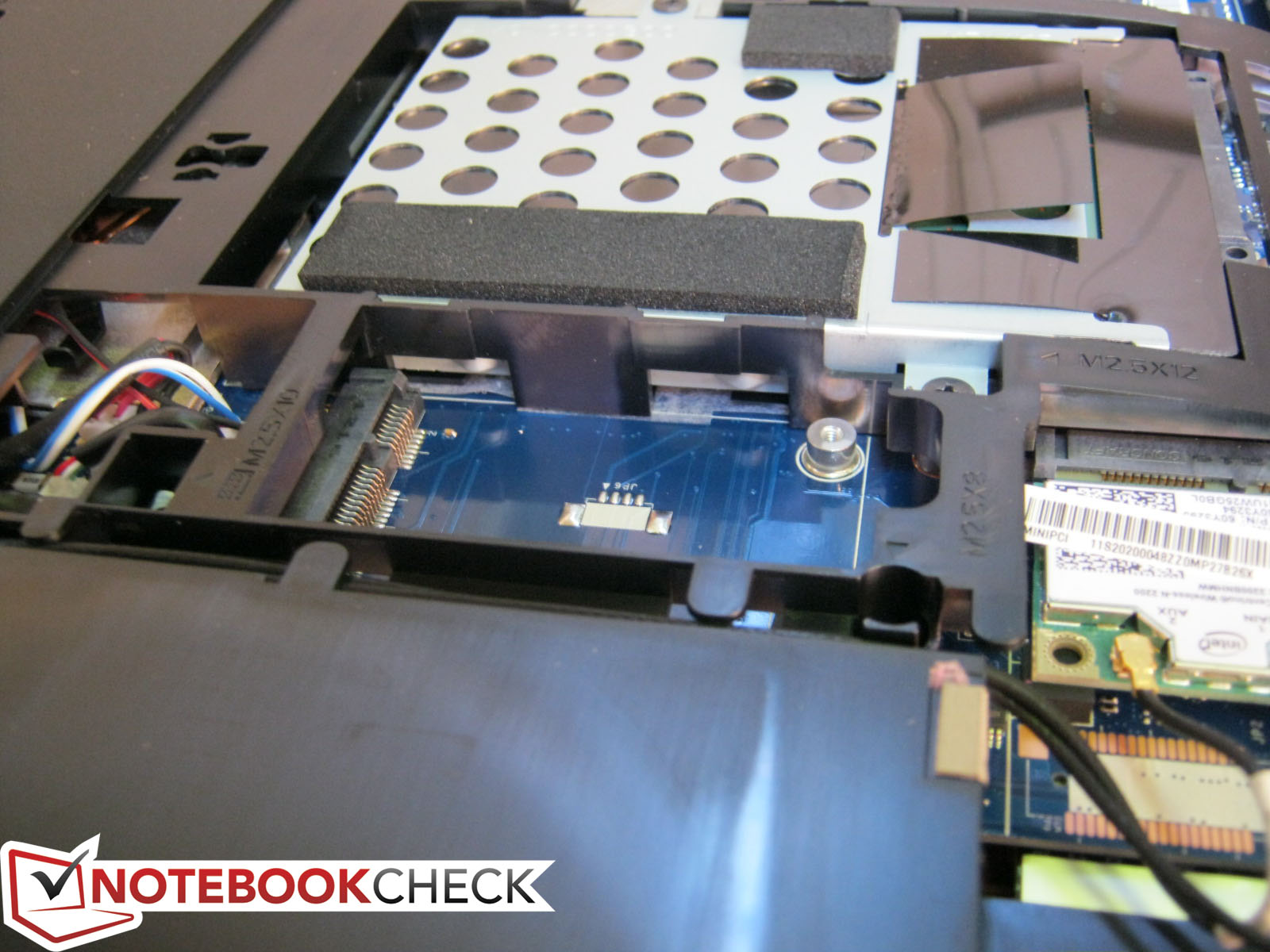 Bezüglich RAM wurde unser Testmodell mit 2x 4 GB DDR3 PC3-12800 von Hyundai ausgestattet. Beide Module, die Festplatte und die beiden Mini PCIe Slots sind von unten nach Entfernen zweier Kreuzschlitzschrauben einfach zugänglich.