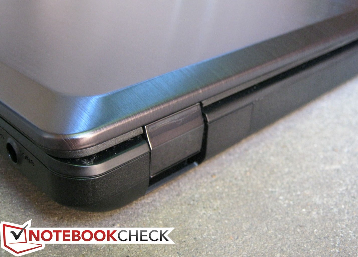 Positiv dagegen ist, dass die Scharniere ziemlich steif sind (nur wenig Vibrationen auf nicht stabilen Oberflächen) und der Bildschirmdeckel auf Verwindungskräfte nur geringfügig nachgibt. Die Basis des Notebooks ist mäßig gut gefertigt und robust, wobei es unter Verwindungskräften nur wenig nachgibt und nicht knarrt. Sogar im zentralen Bereich, eine Schwachstelle bei vielen Notebooks, hält sie Druckeinwirkung überdurchschnittlich gut stand. Wahrscheinlich bedarf nur das Touchpad selbst Verbesserungen, da es sich ziemlich dünn und billig anfühlt.