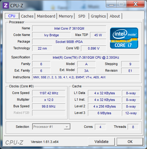 Die meisten aktuellen Modelle des IdeaPad Y580 sind standardmäßig mit einem leistungsstarken 22 nm Quad-Core 2,3 GHz i7-3610QM ausgestattet. Dieser 45 Watt TDP Prozessor ist einer der häufiger verwendeten Ivy Bridge Vierkern-CPUs und wird in vielen neuen Hochleistungsmodellen eingesetzt, unter anderem im HP Envy 17, Asus G75VW und Alienware M17x R4. Aufgrund der Miniaturisierung der Lithographie sollte die Ivy Bridge-Serie theoretisch bei gleichem Energieverbrauch schneller sein als das Sandy Bridge-Gegenstück. Weitere Informationen und Benchmarks des i7-3610QM finden sie in unserem Spezialartikel.