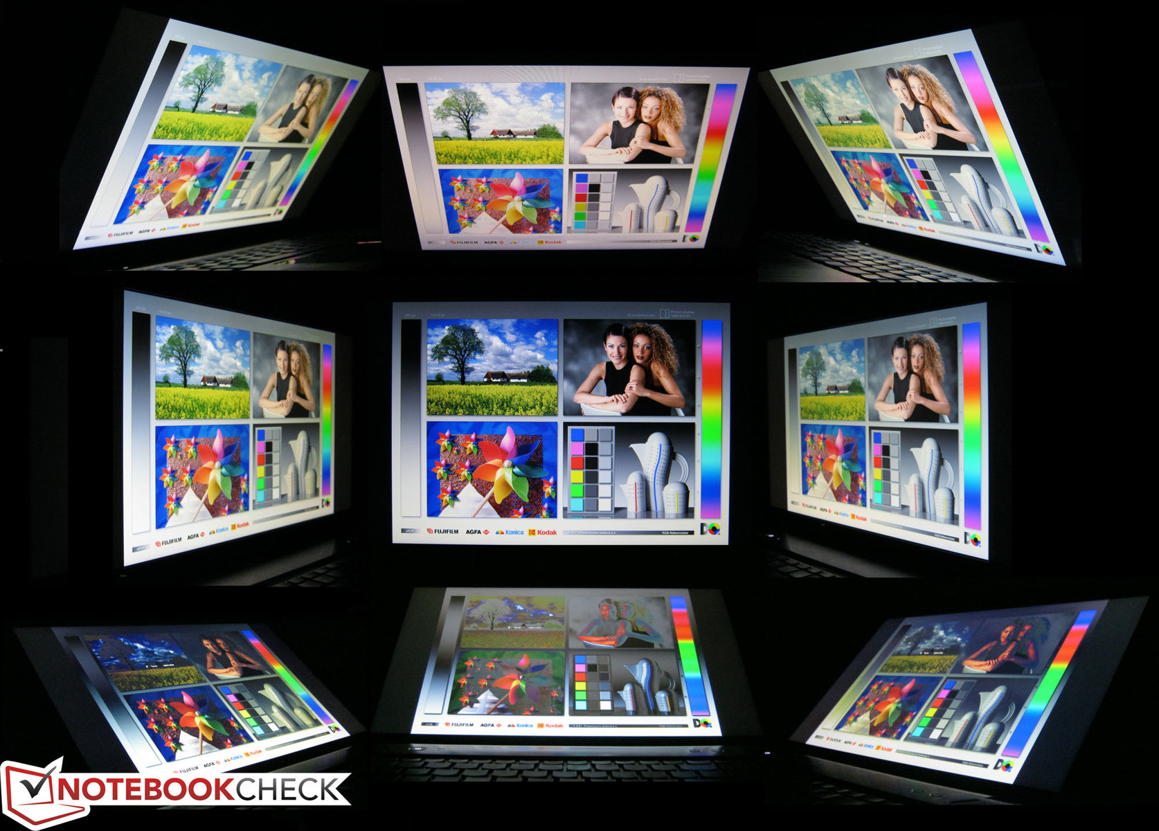 Die Blickwinkelstabilität ist für einen TN Bildschirm ausgezeichnet. Obwohl eine Farbverschlechterung bei flachen Winkeln beobachtet werden kann, wirkt sich diese nicht so schwer aus. Horizontal ist die Blickwinkelstabilität besser, sodass es kein Problem sein sollte, dass viele Benutzer gleichzeitig auf den Bildschirm schauen. In Kombination mit dem ausgezeichneten Schwarzwert und dem Farbraum, handelt es sich um eine hochkarätige Anzeige für das Y580.